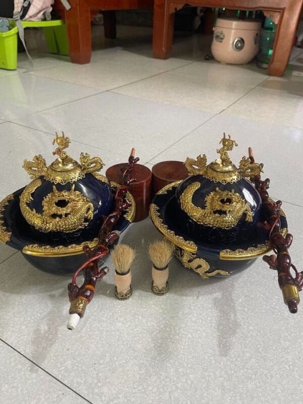 - Đặc điểm: Điếu bát được vẽ hoặc khắc họa hình rồng bay lượn uy nghi, phối màu xanh, vàng truyền thống.