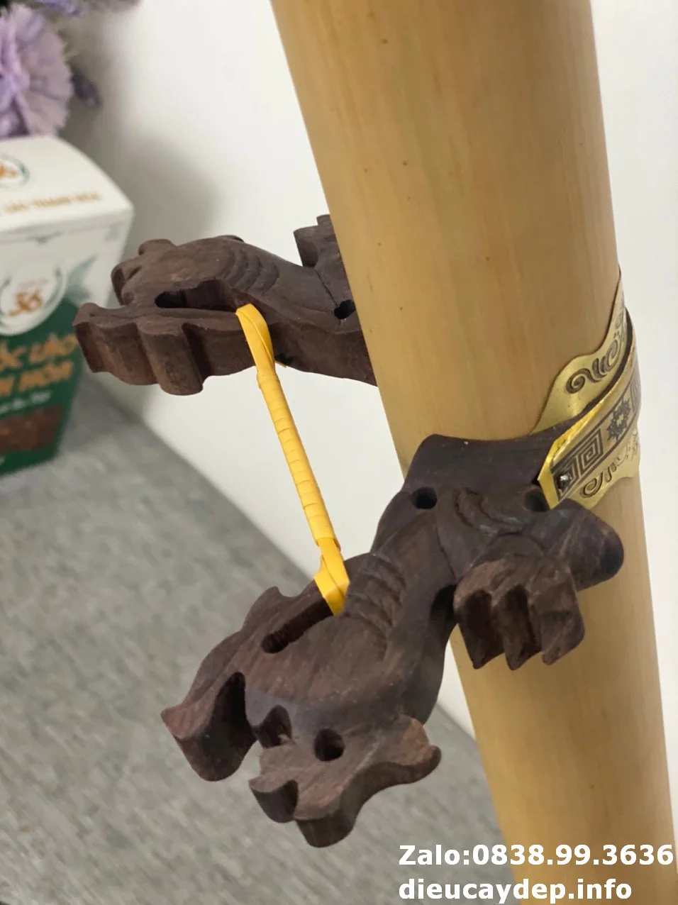 Chân điếu thích hợp với thân điếu có đường kính từ 4-6 cm. Khi mua chân điếu, shop sẽ gửi kèm dây mây buộc chuyên dụng để đảm bảo chắc chắn và dễ dàng sử dụng.