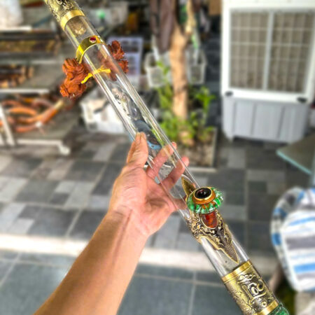 Điếu Cày Thủy Tinh Bọc Đồng 70cm là một lựa chọn đẳng cấp cho những ai yêu thích trải nghiệm hút thuốc lào độc đáo, đẹp mắt và sang trọng. Được chế tác từ chất liệu nhựa thủy tinh cao cấp – loại nhựa trong suốt, bền bỉ, chịu lực tốt – kết hợp với viền đồng thủ công hoa văn tinh tế, tạo nên tổng thể hài hòa giữa hiện đại và truyền thống.